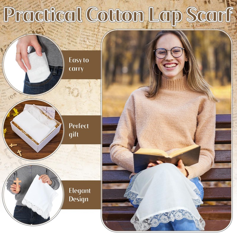 - Elegant Design: the handkerchiefs are designed in white, which is elegant and solemn, and more in line with the solemn and sacred atmosphere of the church; The edge of the knee scarf is decorated with exquisite lace; It is an accessory applied by women to cover their knees when sitting in churches or other religious places, showing the feminine and elegant temperament without losing respect and solemnity
