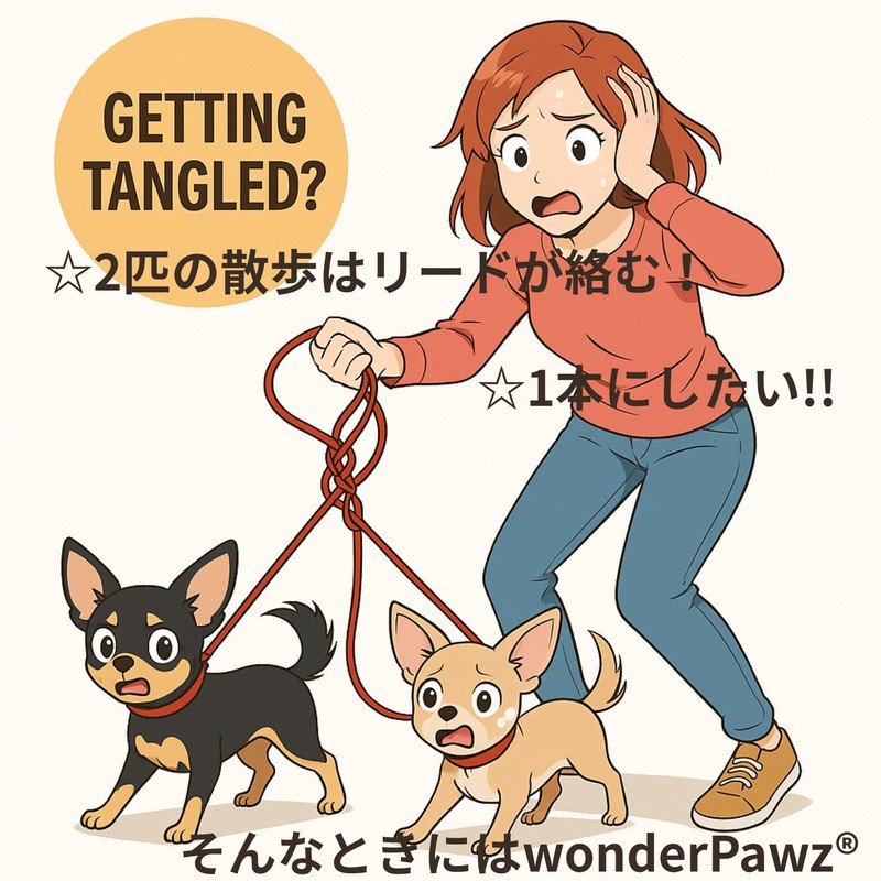 WonderPawz Multi-Head Lead, Double Reed, Multi-Head Walk Lead, Small Dog Lead, Pet Lead, Tangle-Free Design, Tangle Resistant Lead, Cushion Grip, Compatible with 1-2 Heads, Red/Blue/Green, Rainproof