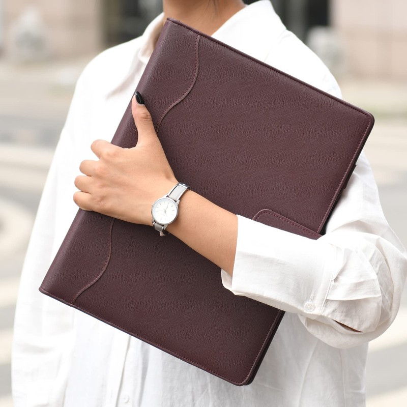 - INNOVATIVE ORGANIZED & STORAGE -- High-capacity A4 padfolio designed with removable binder clip, sheet protectors, tablet pocket, pen loop, cell phone holder, file pocket, bill pocket and card holders. Various interior pockets and slots keep your everything in order and easy to find.