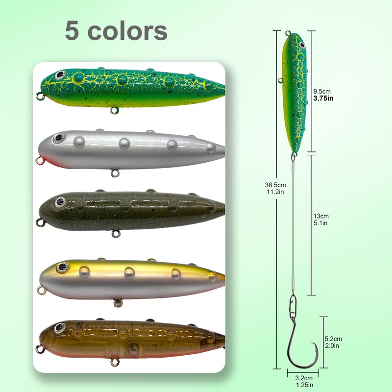 A Catfish Rig is a fishing setup designed for targeting catfish.Our WONDERSEE Pre-Rigged Catfish Rigs are ready to use any time you need them without the time and trouble of tying up your own. Complete catfish setup includes the following components: 1. Main Line: A strong fishing line that connects your rig to your fishing rod. It should be capable of handling the weight and strength of the catfish you're targeting. 2. Sinker: A weight or sinker is attached to the end of the main line to help the bait sink to the desired depth. You can choose any shape of sinker to help the rig keep a distance from the bottom of the water. 3. Swivel: A swivel is used to prevent line twist and tangling. It's attached to the main line above the sinker. 4. Leader Line: The leader line is typically made of a more abrasion-resistant material. We choose the Anti Bite Steel Fishing Line, is connected with lure and power clip 5. Hook: The leader line has a catfish-specific hook attached to it,Our WONDERSEE santee cooper rig equipped with UP RING CIRCLE HOOK KIRBY,sharp and sturdy, that the catfish will not escape even after biting and struggling. 6. Bait: Catfish rigs are typically baited with stink baits, cut bait (like shad or skipjack), worms, or other catfish-attracting baits. 7.Popper:Popper are made with high-quality ABS materials, our popper contain stainless steel beads and Robust color coating Are you ready to take your catfishing game to the next level? Look no further than the WONDERSEE Santee Cooper Catfishing Rig, your go-to solution for reeling in those massive catfish. Whether you're a seasoned angler or just starting out, this rig is designed to help you maximize your success on the water.