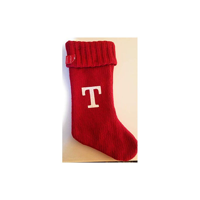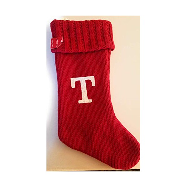 Wondershop Christmas Holiday Red Thick Knit Stocking Monogram Letter T Measur...