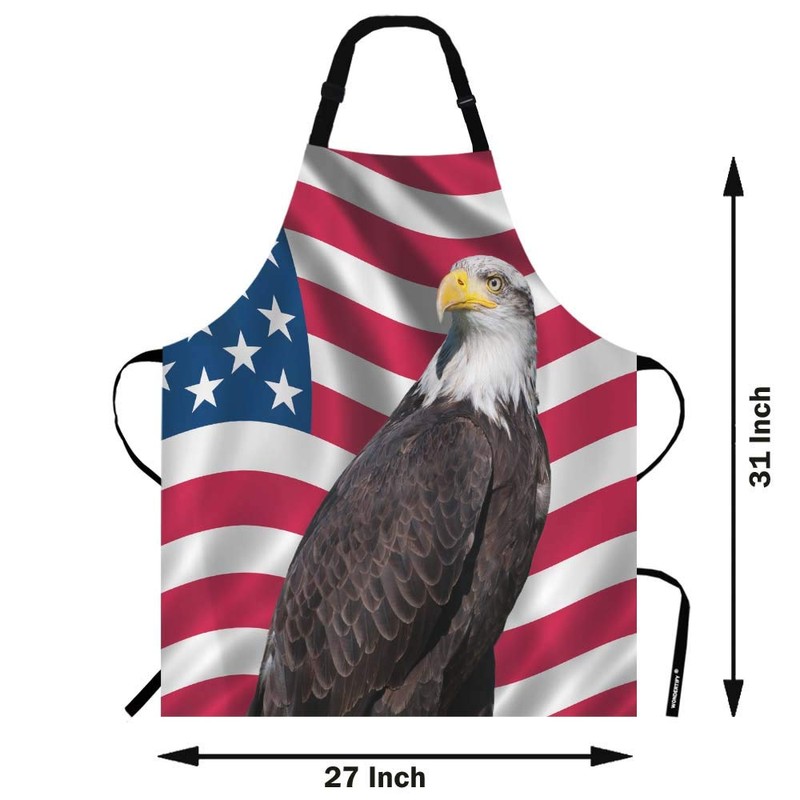 WONDERTIFY American Flag Eagle Apron,Patriotic Symbol USA Flag Stars and Stripes with Bald Eagle Bib Apron with Adjustable Neck for Men Women,Suitable for Home Kitchen Cooking Waitress Chef Apron