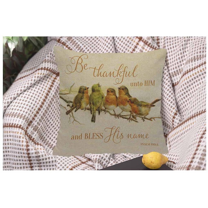 Be Thankful Unto Him Cushion Cover Bless His Name Five Birds Green Scripture Decorative Throw Pillow Covers For Couch, Bed Sofa Pillows Case Orange 45X45 Cm