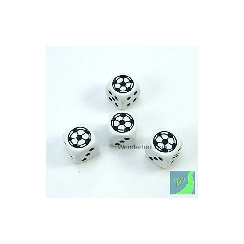 Wondertrail WKP13184E4 Soccer Dice D6 White Opaque with Black Pips 18mm (23/32in) Set of 4 Dice Koplow Games