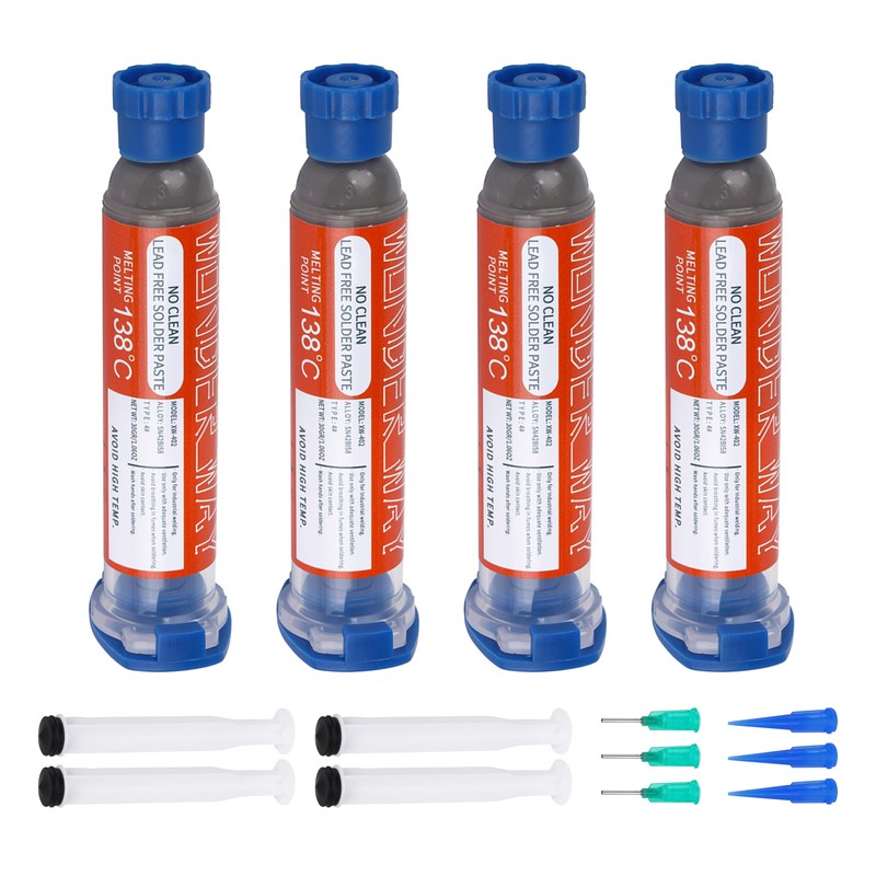 Wonderway Sn42/Bi58 T4 Lead Free Solder Paste No Clean, 138℃ Melting Point (30gx4packs)