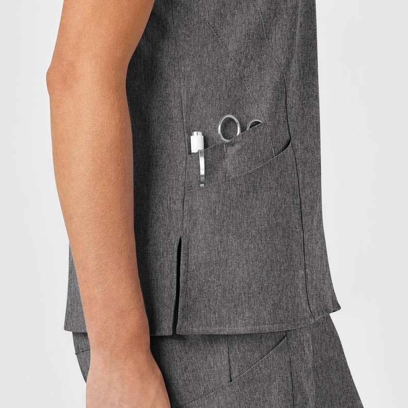 WonderWink W123 Women’s Stylized V-Neck Scrub Top — Charcoal Heather, Large