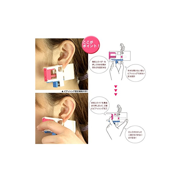 - It also comes with a malfunction prevention feature, so you cannot pierce it unless you press the blue or the slider to open the main unit. First earrings are pre-set on the body