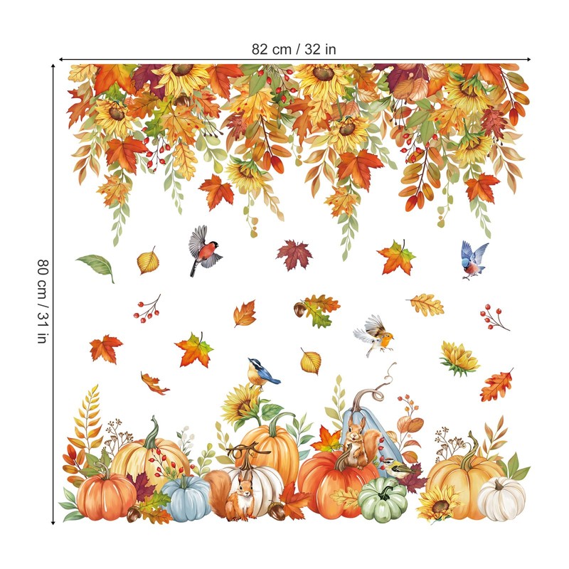 wondever Fall Sunflower Window Clings Autumn Harvest Hanging Flower Vine Pumpkin Glass Sticker Decal Anti Collision Double-Side Static Window Stickers for Home Glass Window