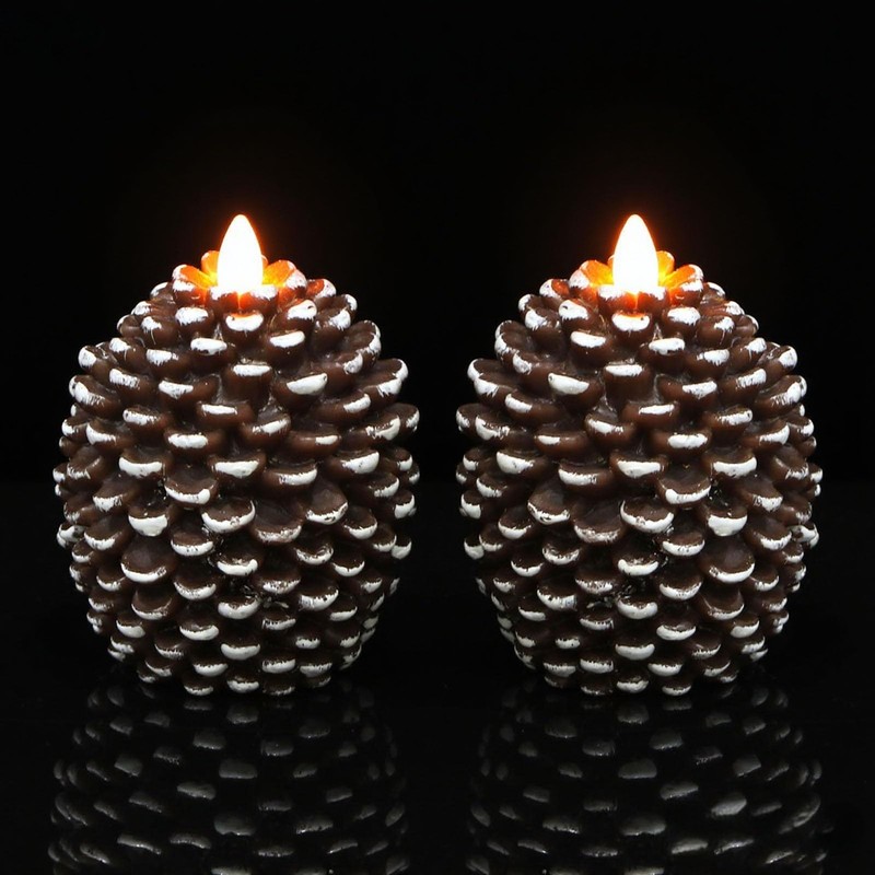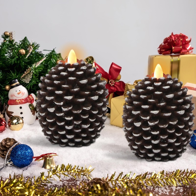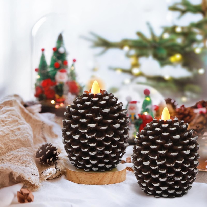 - ❤REAL WAX PINECONE FLAMELESS CANDLES: 2 brown flameless pine cone candles, 3.5" diameter with 4.7" height. All pine cone shells are made by real wax with LED flickering. For the upcoming autumn, Christmas decoration, Thanksgiving, weeding or other holidays, it is a great desk ornament.