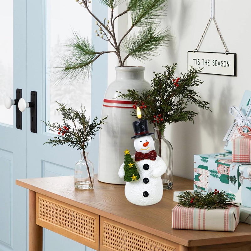 - ☃️3D SNOWMAN FLAMELESS CANDLE: This flameless candle features a 3D design that brings a snowman to life in three dimensions. The material is made of real wax casting with 3D wick warm yellow light decorate your christmas day!