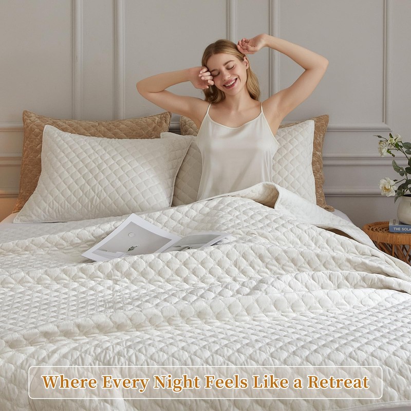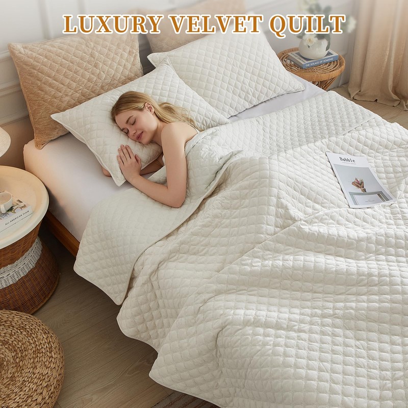 - Cloud-Like Luxury Feel: Sink into our velvet quilt set made with premium double-brushed velvet that's softer than cashmere! Breathable fabric prevents night sweats year-round, transforming your bedding into a year-round sanctuary of comfort.