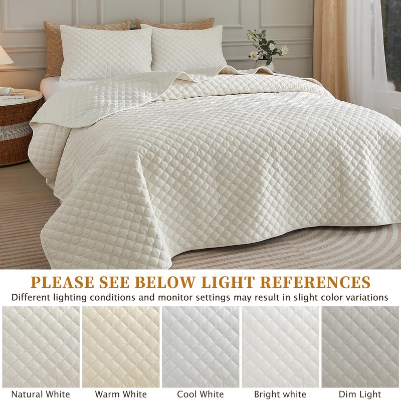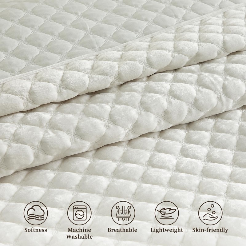 Wondnuga Ultra Soft Velvet Quilt Set King Size - Luxury Lightweight Velvet Bedding Set for All Season, Oversized Bedspread Coverlet Comforter Set with 2 Pillow Shams, Cream White, Diamond