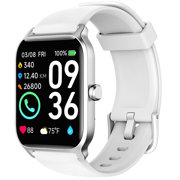 Woneligo Smart Watch for Women with Text and Call,Alexa Built-in,[24H Heart Rate Sleep Blood Oxygen Monitor],5ATM Waterproof,100 Sports Modes 1.8" Mens Watches for iOS&Android Birthday Gifts White
