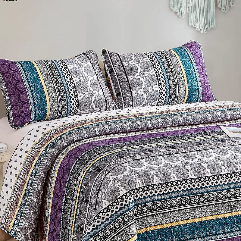 - HIGH QUALITY MATERIAL: Purple bohemian quilt bedspread made of microfiber, super soft, smooth, and breathable. You can use it as a quilt in spring and summer, and a bedspread coverlet set in autumn and winter.