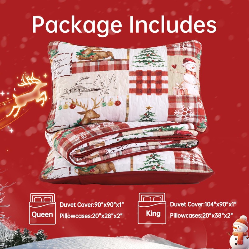 - 【Package & Size】This Christmas quilt set queen include 3 Pieces. Available in quilt set: 1 quilt set queen(90"x 96") and 2 pillowcases (20"x 28")