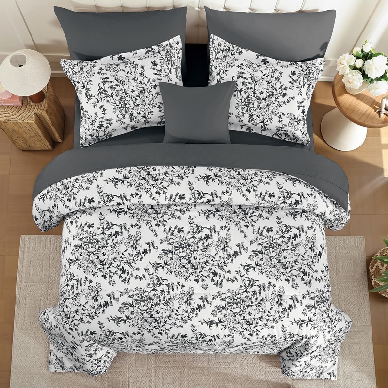 Specificities: Dark gray floral botanical reversible comforter design, lightweight and soft microfiber fabric, delicate and tight stitching process, perfect decoration for your bedroom.