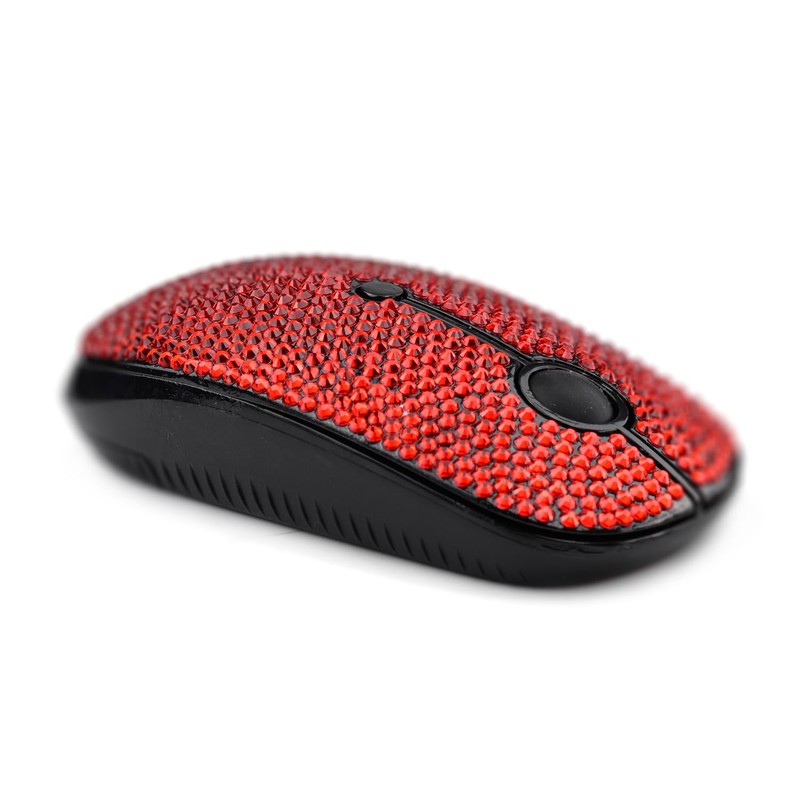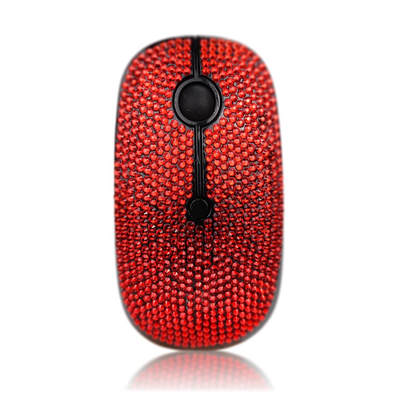 WONGS Bling Austrian Pink Crystal Rhinestone Wireless Mouse, Slim Silent 2.4G Portable Mobile Optical Mice, 3 Adjustable DPI Levels for Notebook, PC, Laptop, Computer, MacBook - Red