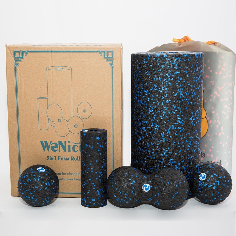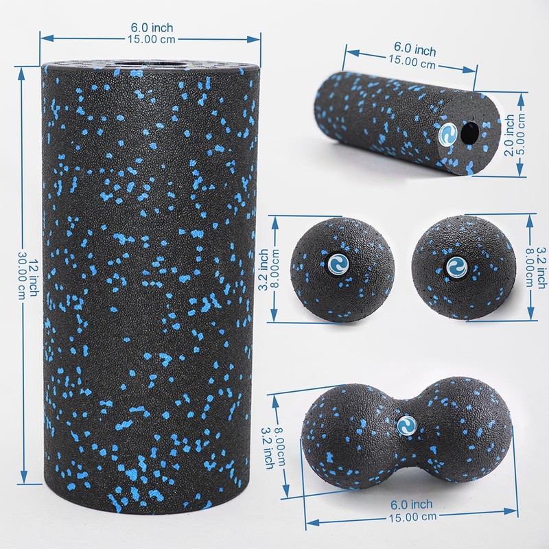 - [A sensible set combination]: 5 different sized tools for optimal rolling massage of the head, neck, back, chest, arms, hips, legs and feet, taking care of every part of the body. Includes an 11.8 x 5.9 inch massage roller with core, a 5.9 x 2 inch mini roller, a 5.9 x 3.2 inch peanut ball and two 3.2 inch fascial massage ball.Metrail is EPP.