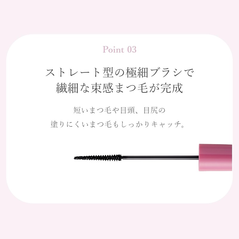 - Separated formula that can be applied without a must: The smooth texture of the liquid radiates each eyelash into a radial radius. *1 due to the makeup effect; Curl up & keep wax*2 blends: Wax lifts eyelashes and keeps curls firmly. *2 carnauba wax. Straight ultra-fine brush creates delicate bundling eyelashes: 2 types of beauty ingredients in bread ingredients. Tenol, Hydrolized. Thawed silk (all moisturizing ingredients)