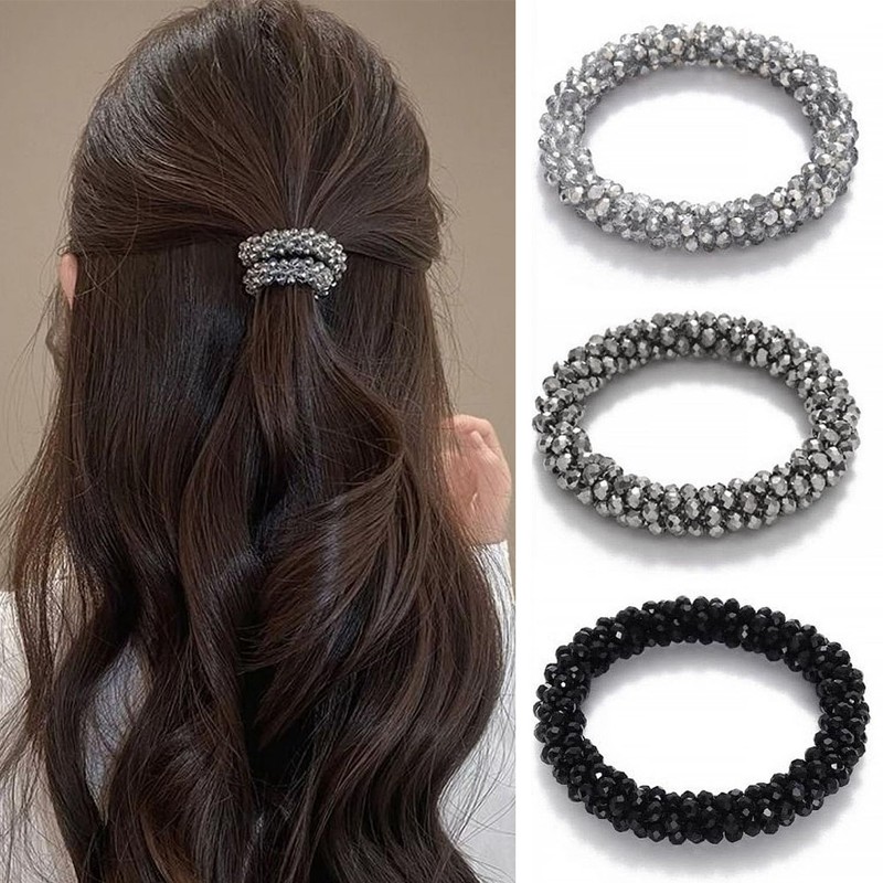 ヘアスタイルの魅力を一瞬で高める高品質ガラス素材のクリスタルシュシュ3点セットが登場!シルバー、ブラック、グレーの3色を厳選し、甘い風、エレガントな風、カジュアルな風に着ても、簡単にマッチングして、心のままに百変のスタイルを作ることができます。