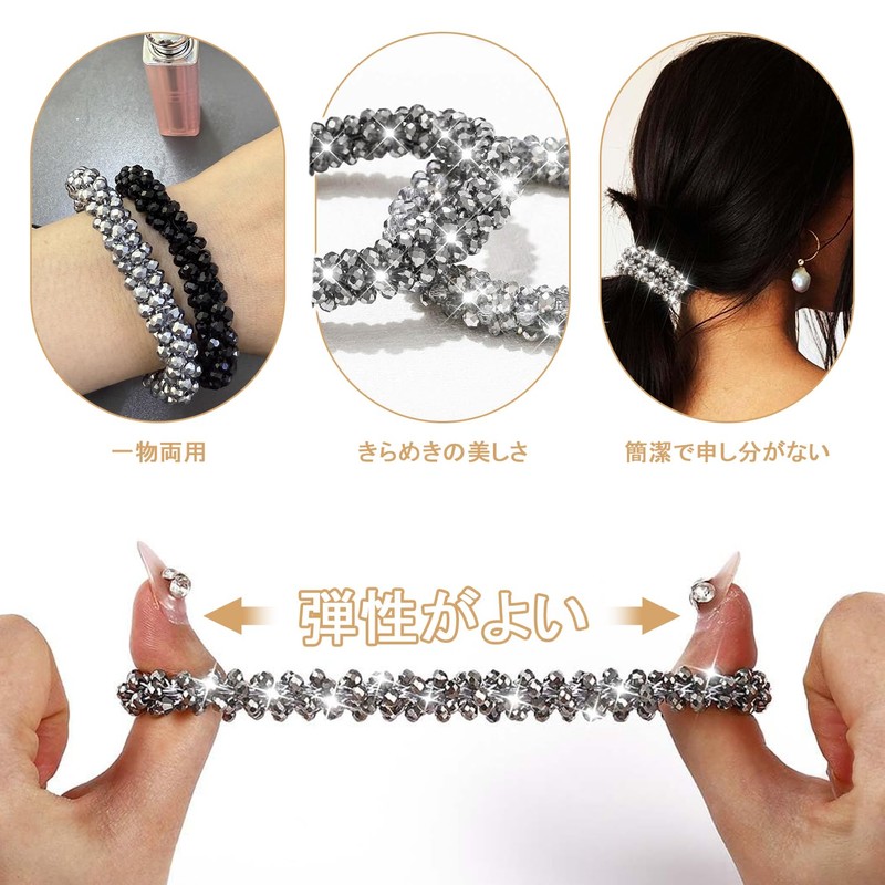 • 【高品質材料】ヘアゴム おしゃれは良質なガラス材料を採用し、ビーズごとに複数の研磨と研磨を経て、破損、色褪せ、変形しにくく、耐久性に優れ、長期的に使用でき、輝く光沢もあなたの髪型をよりよく引き立てることができます。