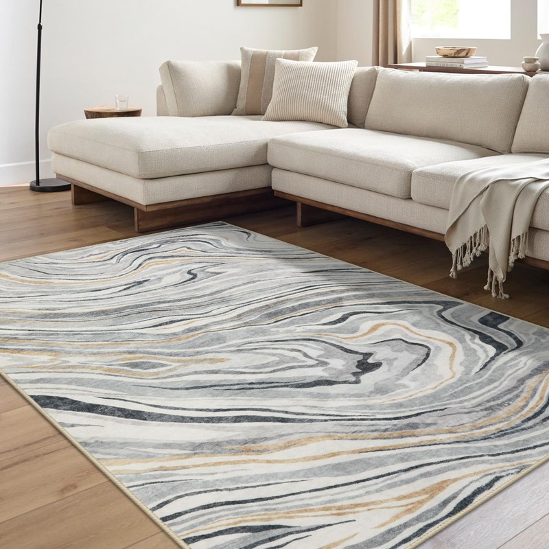 Wonnitar Machine Washable Rugs 5x7, Large Grey Modern Area Rug for Living Room Non-Slip Abstract Bedroom Mat Soft Ultra-Thin Non-Shedding Floor Carpet for Guest Dining Room Mudroom