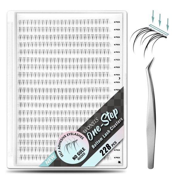 WONSIS Self Adhesive Eyelashes, 228 Bottom Lash Clusters DIY Eyelash Extensions, No Glue Needed, Lash Clusters - Longer Lasting, No Sticky Residue Pre-Glued Eyelashes (Bottom Lashes 6mm)