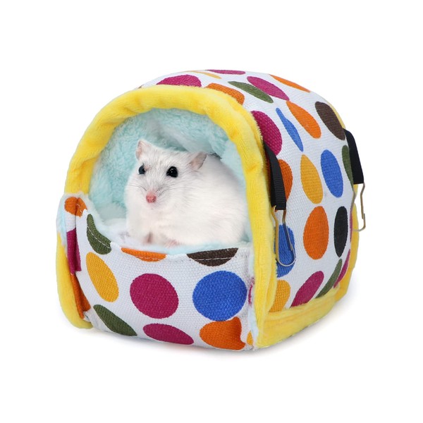 Wontee Hamster Bed Hideout Sugar Glider Hammock Small Animal Warm Bed House for Hamsters Hedgehogs Sugar Glider Gerbils Mice (Medium, Colorful Dots)