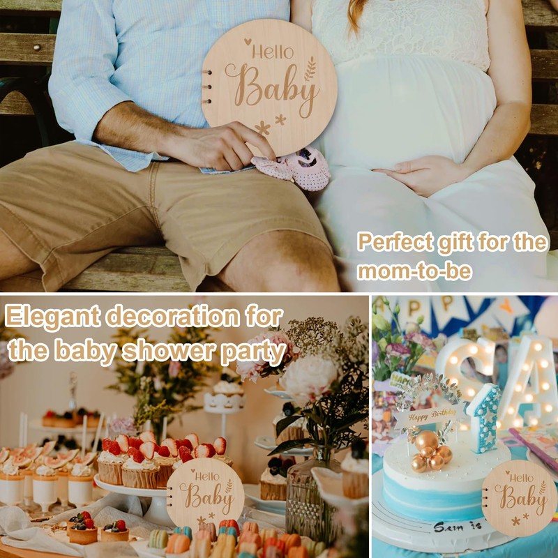 Wood Baby Shower Guest Book, Baby Shower Sign in Book Round Baby Shower Guest Book Hello Baby Guest Advice Book with Blank Pages for New Parents and Expecting Mothers