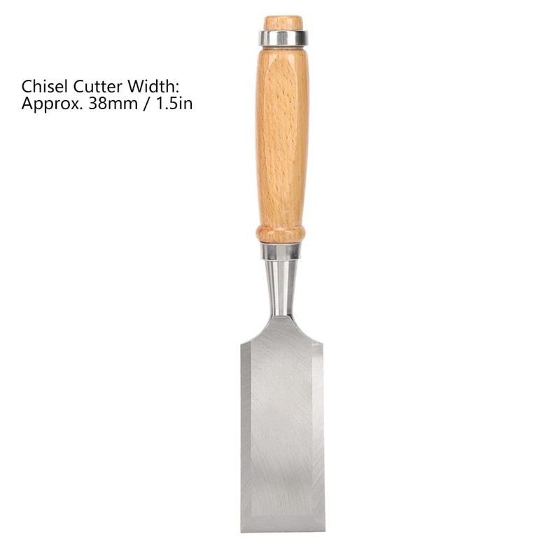 Wood Chisel Tool, 38 mm Cr-V Construction Wooden Handle Flat Chisel for Carpenters, Woodworking Carving
