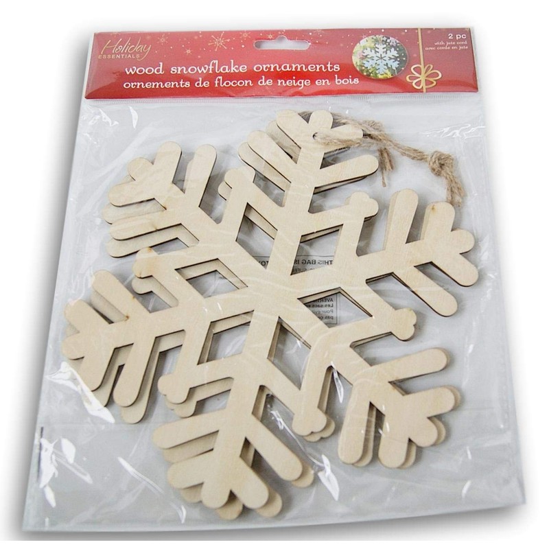 Wood Christmas Craft Ornament - Snowflake - 2 Count - 8 Inch Diameter