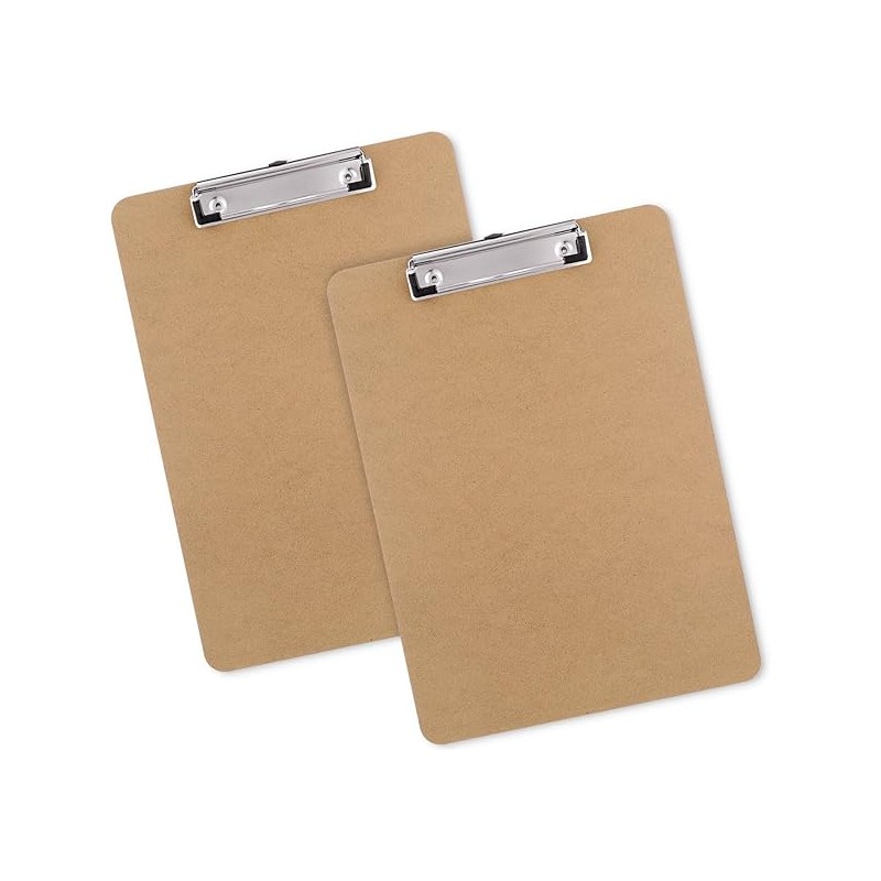 Wood Clipboards Set of 2, Letter Size Hardboard Clip Board 8.5x11 for Classroom, Students, Kid, A4 Standard Size 9" x 12.5" with Low Profile Clip, Office & School Supply