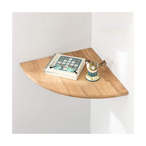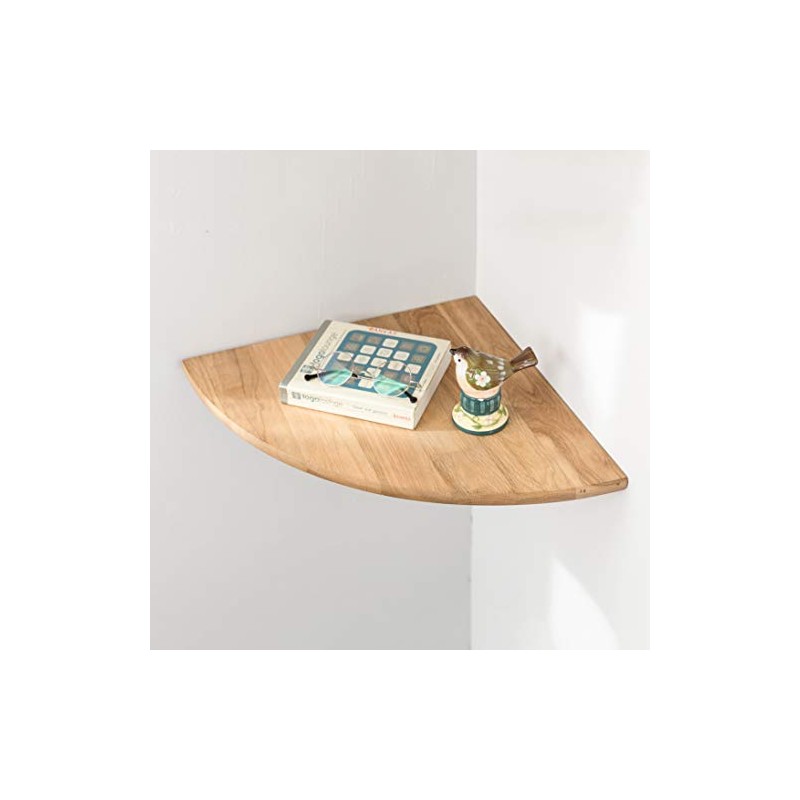 Wood Corner Shelf, 12inch Oak Floating Shelf Round End Wall Mounted Display Shelf Floating Speaker Nursey Monitor Shelf Bookshelf Wall Decor for Bathroom, Kitchen ,Living Room ,Bedroom