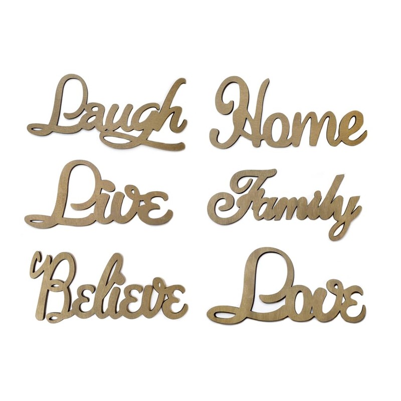 Wood Craft DIY Laser-Cut Words, 17 x 8 cm, Set of 6