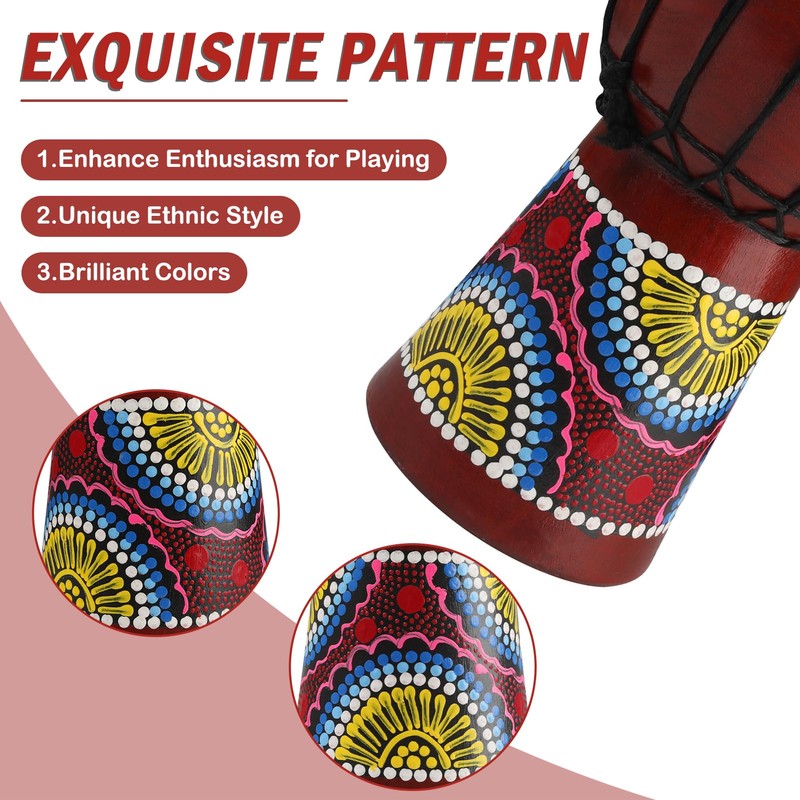 - Exquisite Hand-Painted Design: African hand drum is adorned with beautiful hand-painted ethnic-style patterns. The unique pattern design endows the African drum with an exotic charm, adding more artistic allure to your performances. This drum not only produces a great sound but also looks like a work of art.