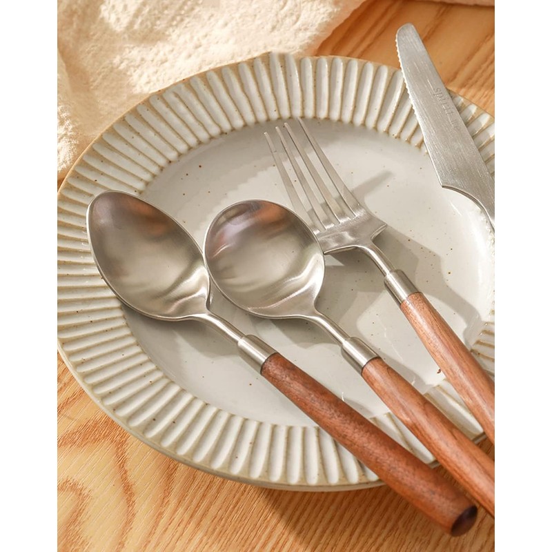 - 🍽【Wood grip】:The handle of this set of tableware is solid wood. It can be well matched with your dining table. It is a set of exquisite and beautiful tableware, which is very practical.