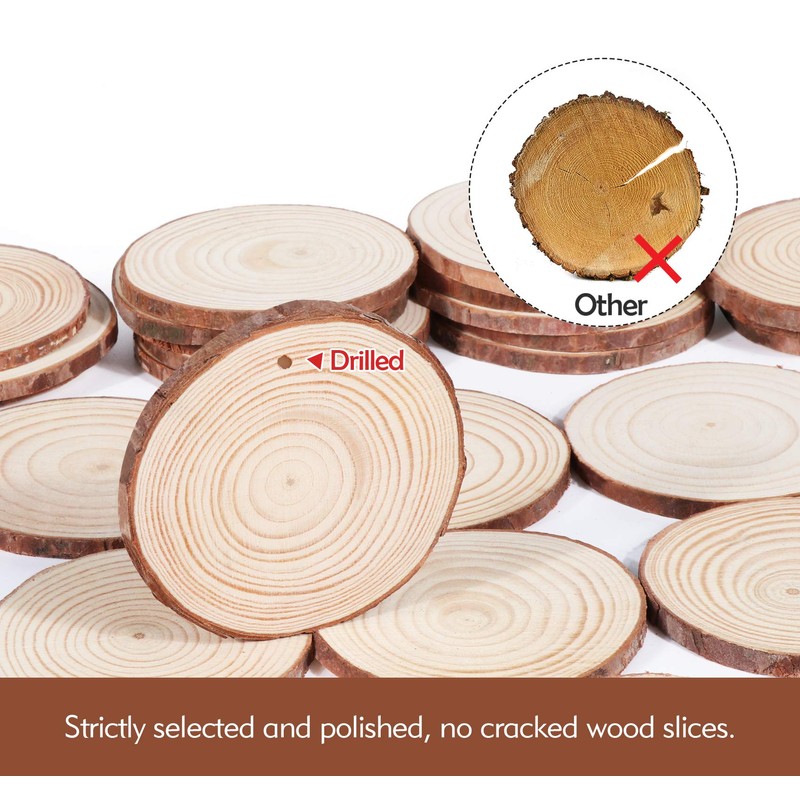 - Natural Wood Slices for Crafts: Our wood slices made of natural pine wood with barks. Each slice was selected, sanded and polished, safe enough for use.