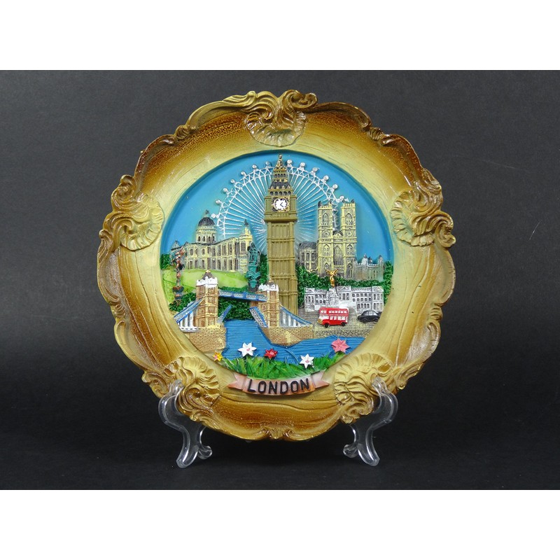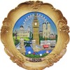 Wood Style Decorative Plate Detailing London Skyline: Big Ben, Tower Bridge and London Eye etc (Medium Ornate)