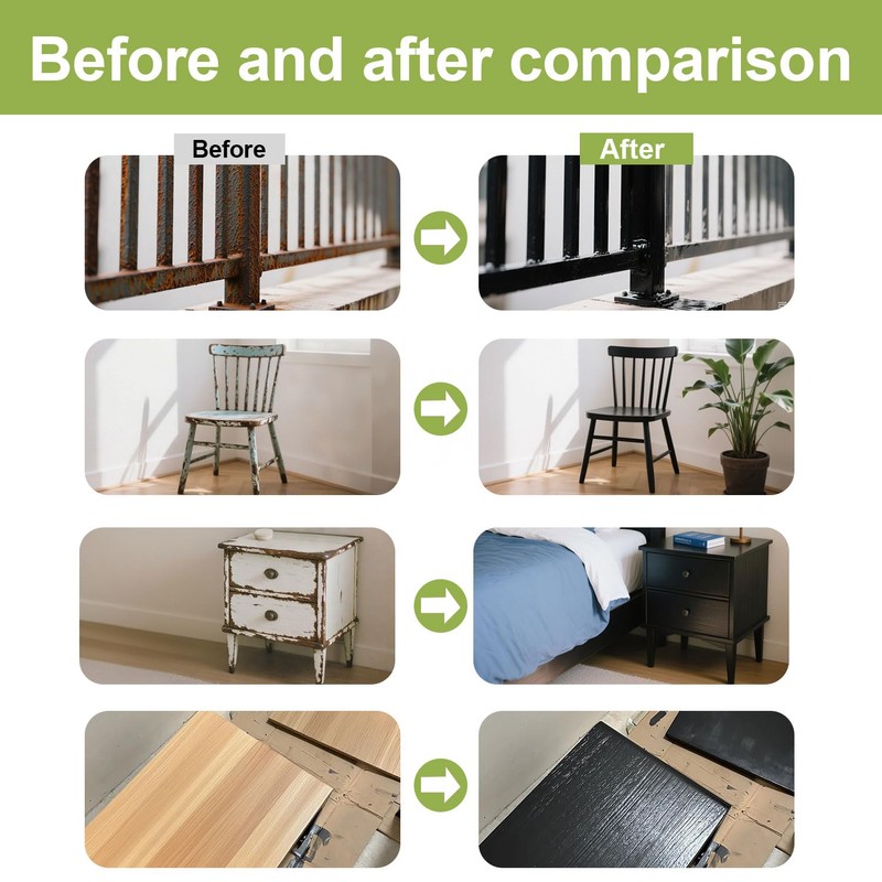 - 【Rapid Coverage】: Combining black paint with a brush, the 17 FlOz capacity allows for quick renovation of small areas on wooden furniture and metal railing, saving time and effort.