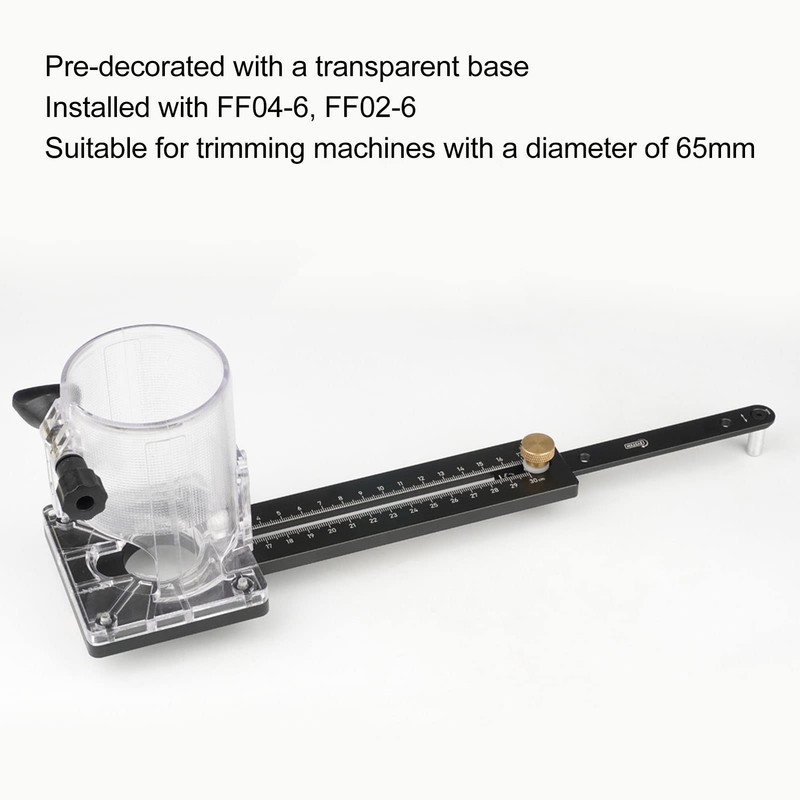 • Main Application: Router tool, The wood trimmer router base is mainly used to work with wood trimmers. The product comes preinstalled with a trimmer transparent base, which is suitable for FF04 6, FF02 6, and the wood trimmer of 65 mm in diameter.