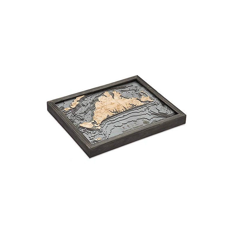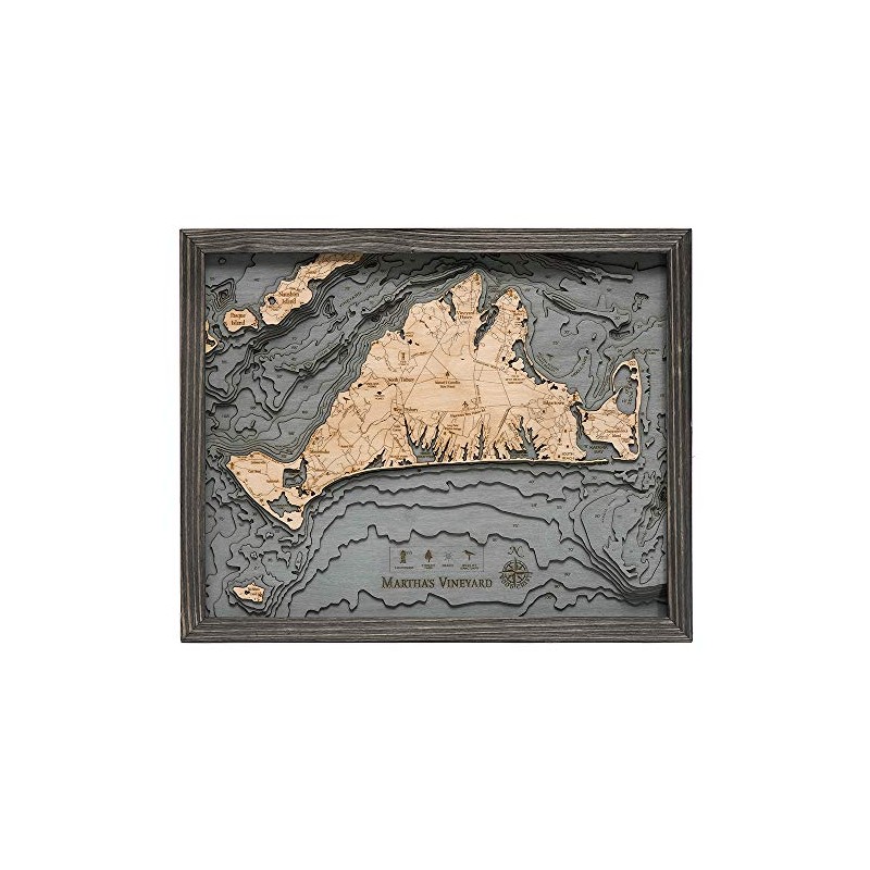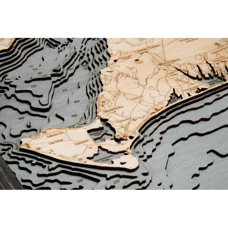 WOODCHART Martha's Vineyard, Massachusetts 3-D Nautical Wood Map, Grey Frame, 16" x 20"