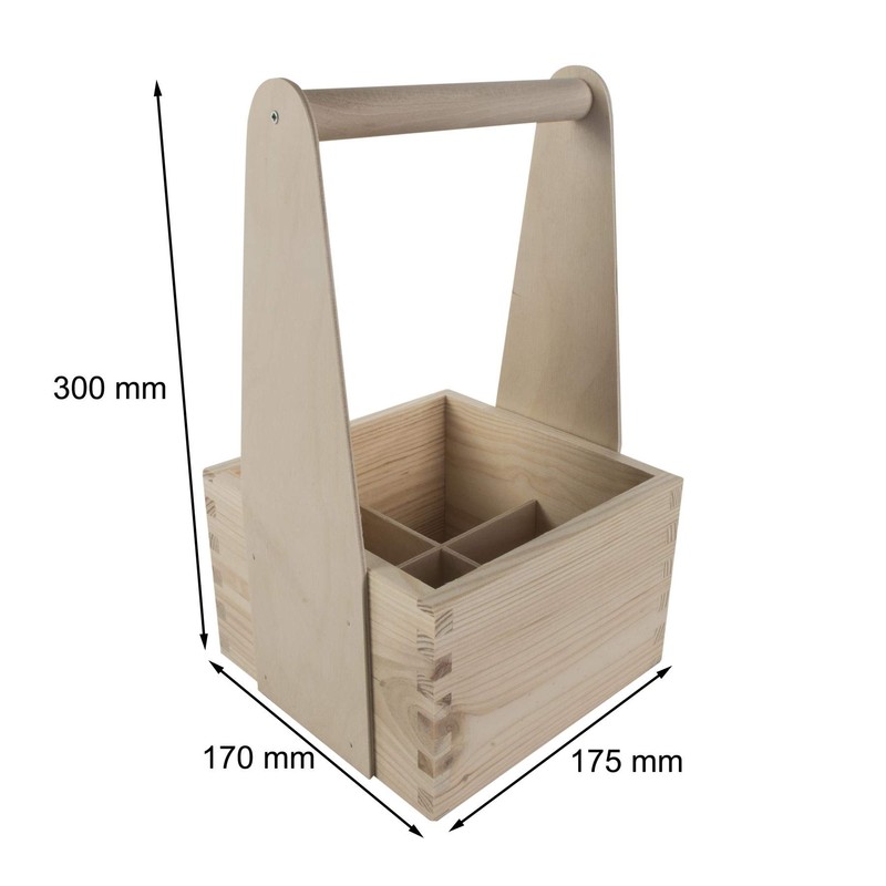 WooDeeDoo Wooden Bottle Carrier Caddy | Fits 4x 330/500 ml Beers | Trug Tote Basket Crate Case Box Holder | Plain Unfinished Wood Trug Tote Crate Case Holder