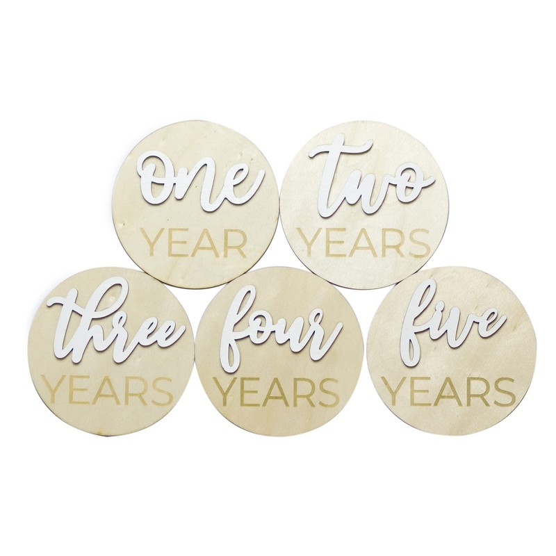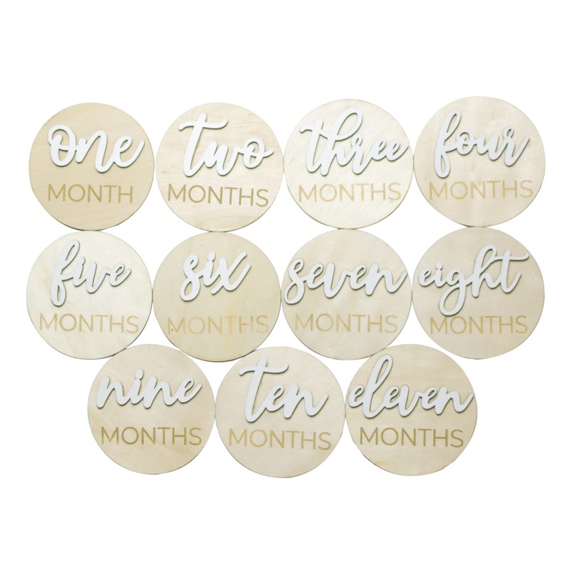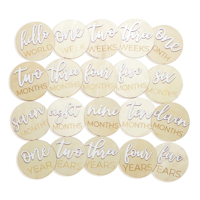 Wooden 3D Monthly Milestone Discs for Baby Photos (20 pcs Set), First Year Monthly Milestone Marker, Includes 1-5 Years, Natural Stained