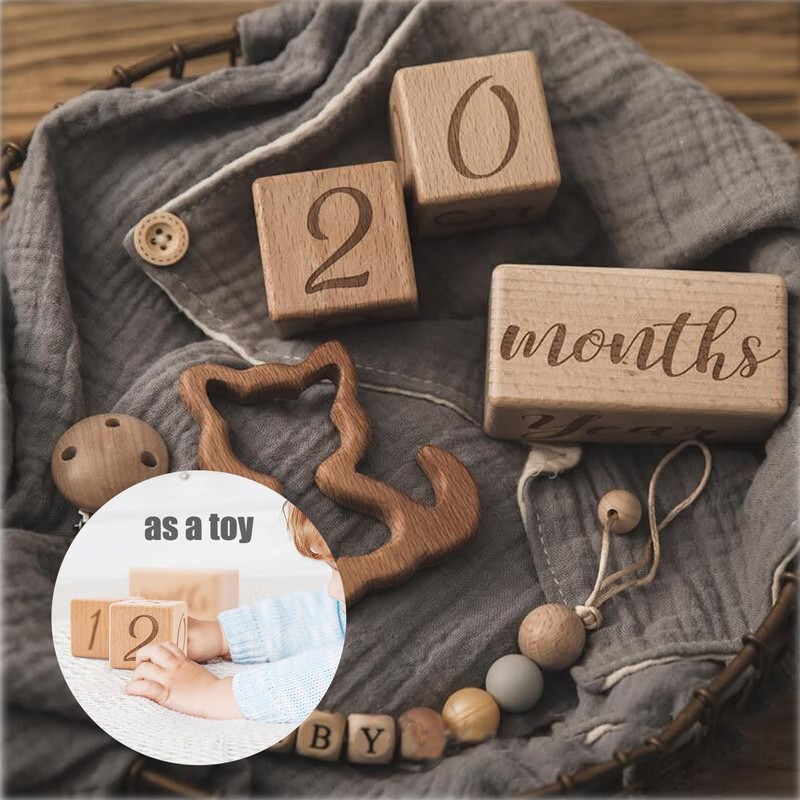 - STYLISH, PRACTICAL AND NEUTRAL: Neutral woodgrain boy and girl age blocks, suitable for a variety of decoration styles, everyone will like it, also a good decorative prop. Baby can learn the numbers and special symbols of milestone blocks to promote brain development