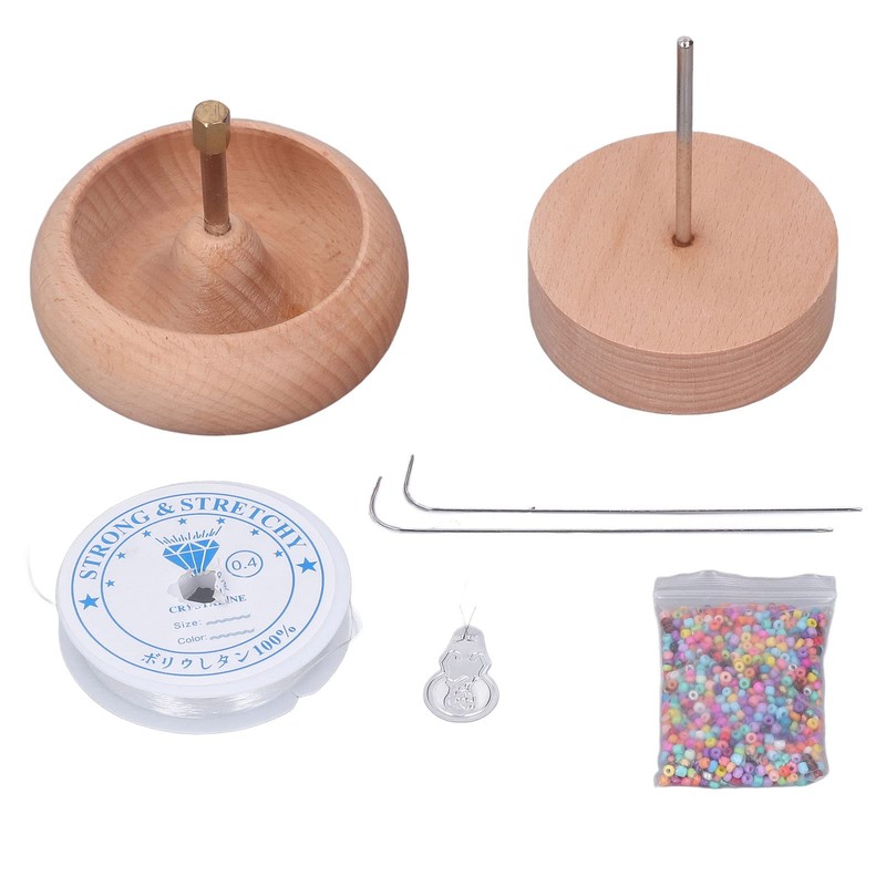 Wooden Bead Spinner Kit for Jewelry Making, Beading Turning Bowl 10cm Manual Beading Threader Tool, Great for Quick and Easy Beading of Beads
