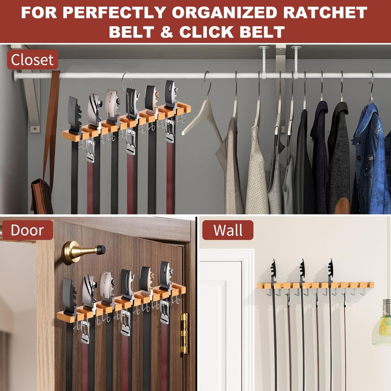 - Versatile 2-in-1 Design: Offers the flexibility of mounting your belt hanger on the wall or hanging it in the closet. Wall-mounted belt holder provide stability and prevent tilting and swinging. (Wall studs and hanger hooks are included in the package)