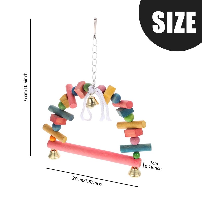 - [Colorful Stimulation] - The wooden bird swing is adorned with colorful wooden beads that offer stimulation to your pet. Additionally, the swing is beneficial for improving your parrot’s balance.