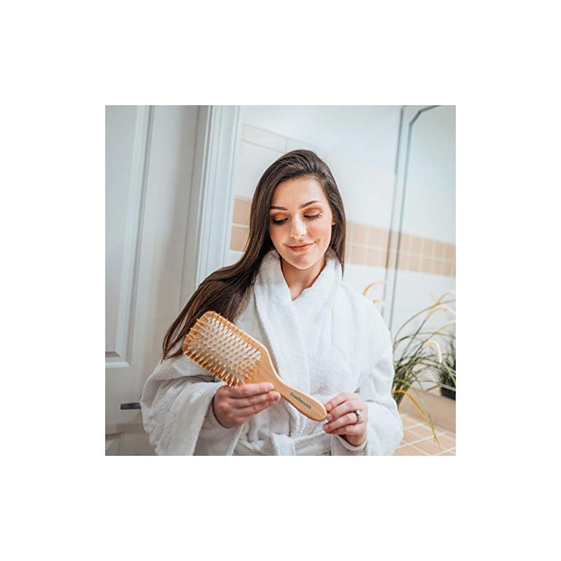 - WOODEN BRISTLE PADDLE HAIR BRUSH: Measures 10.25” long, 3.5” wide & 1.5” deep. Large wooden paddle brush makes brushing long, thick, unruly hair easy.