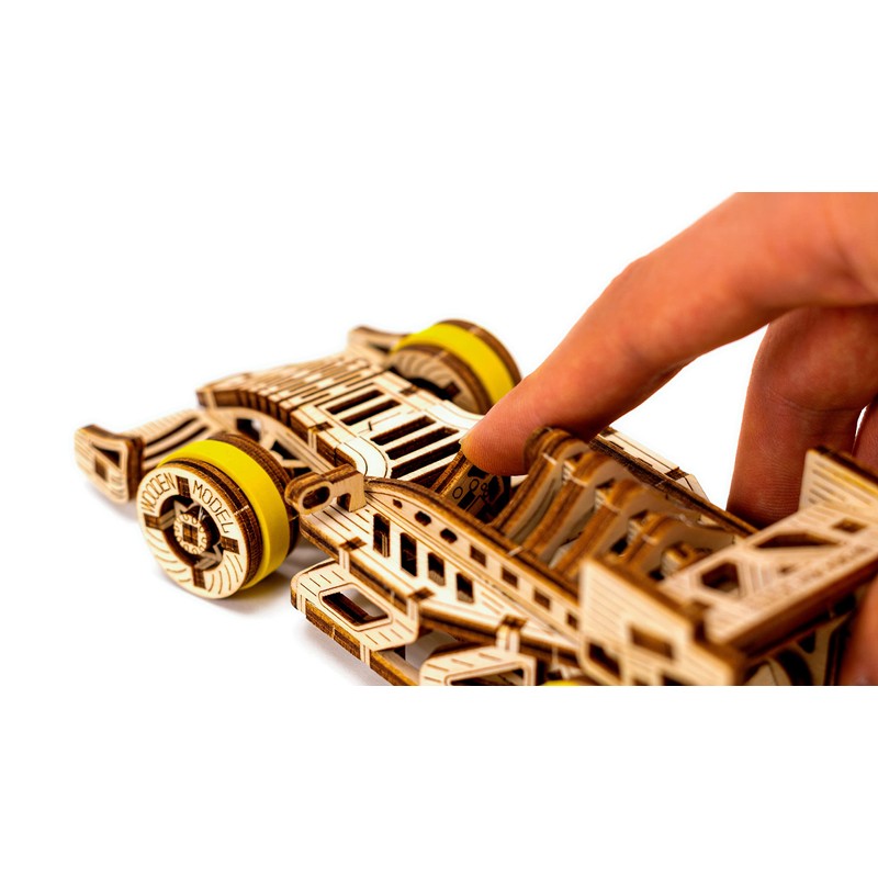 - A RACE CAR IN WOODEN FORM - Ever dreamed about driving a racing car? Dive into the world of racing with the Wooden.City Bolid. This 3D wooden 3d puzzles for adults aren't just for assembling. Once put together, it can move up to a meter thanks to its rubber band motor. Experience the precision and craftsmanship of race cars with this wooden model