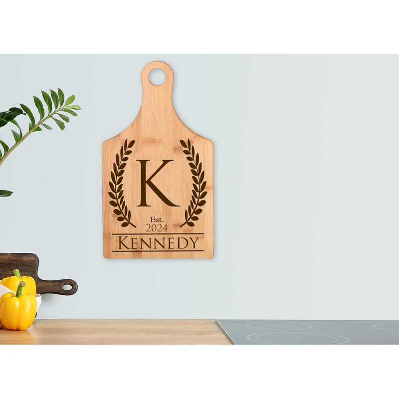 Wooden Cutting Board, Personalized Initial Monogram Gift, Kitchen Accessory with Year and Last Name Customized - 13.5 x 7 Inches